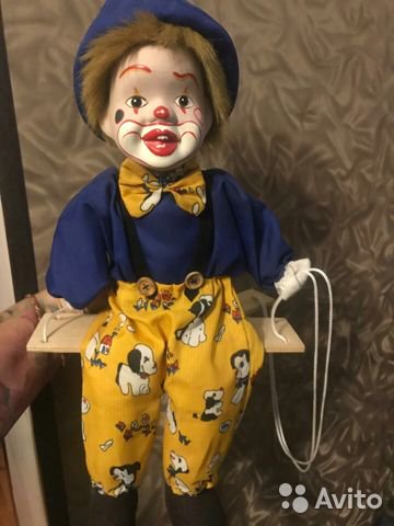 2.винтажный позитивный красавчик клоун, на качельке, можно подвесить под потолок, колечко для подвеса, направляющие и сам малыш в идеале.3000 руб.
